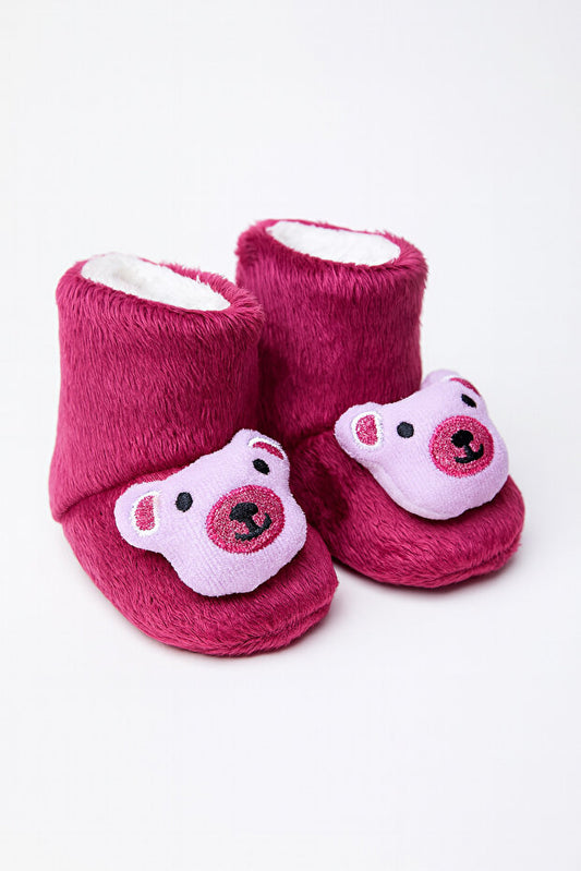Ayıcık Desenli Fuşya Peluş Bot | Çocuklar için Ev Botu