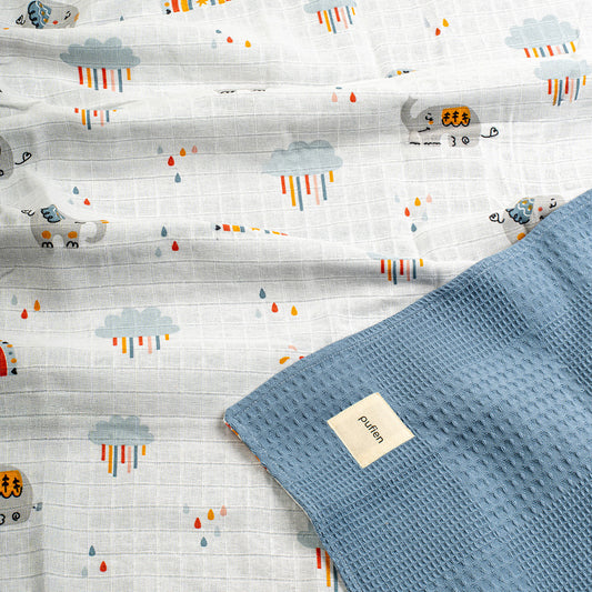 Müslin Waffle Battaniye Bulut Desenli İndigo