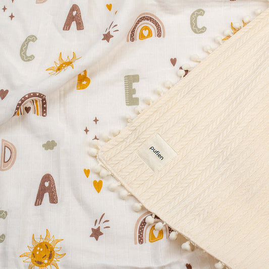 Örgü Battaniye Ekru Harf Desenli – Pufien