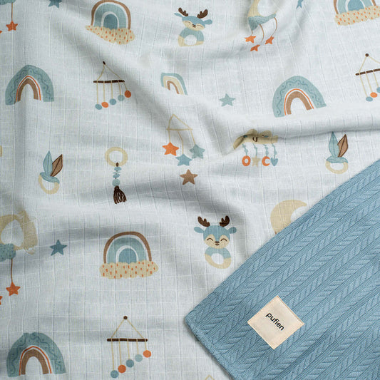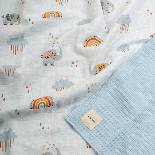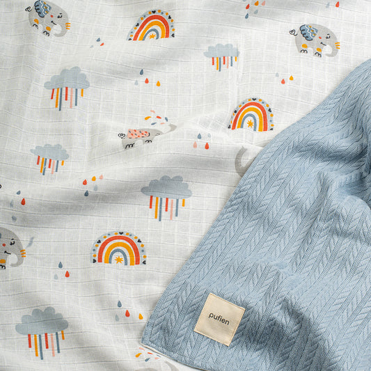 Waffle Battaniye - Gökkuşağı Desenli Mavi