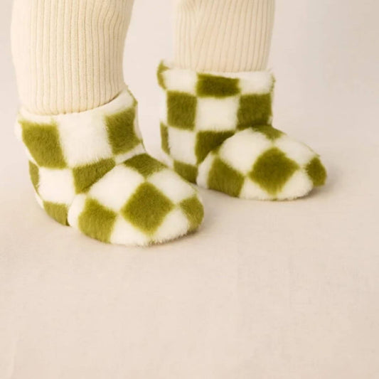 Yeşil Beyaz Kareli Peluş Bot | Çocuklar için Ev Botu