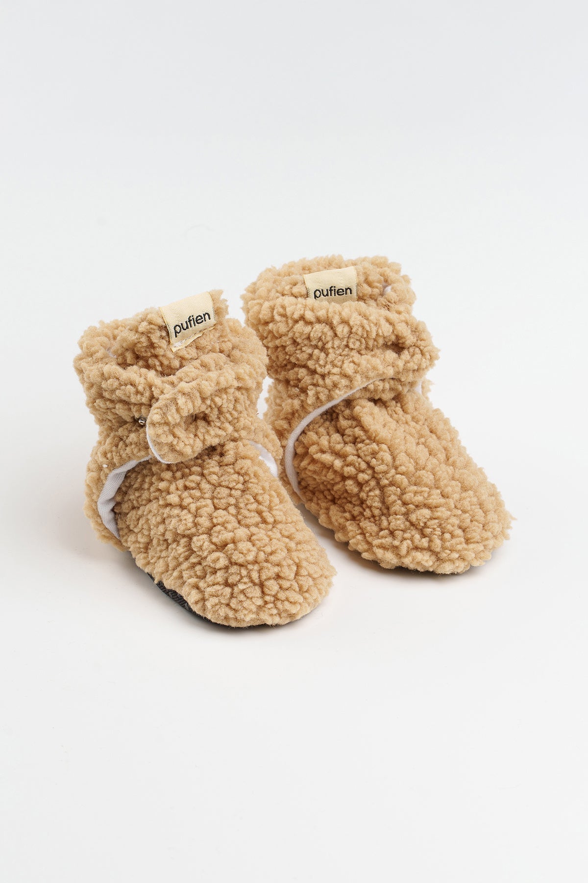 Pufien bebek pandufları, ilk adımlar için gerekli olan doğal ve yumuşak yapısıyla minik ayaklara konfor sağlarken, kaydırmaz tabanı sayesinde güvenli adımlar atılmasına yardımcı olur.