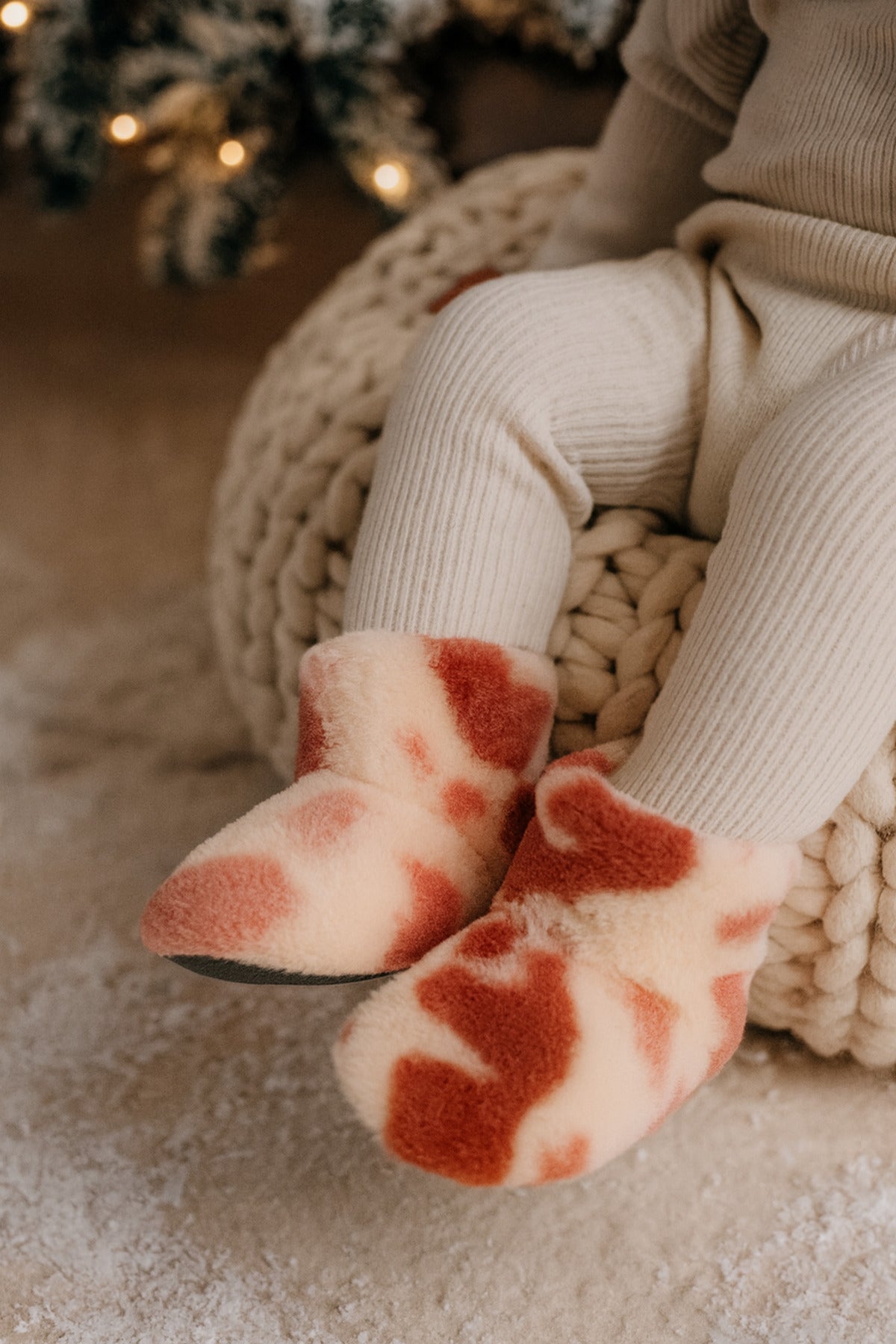 İnek Desenli Pembe Wellsoft Kışlık Ev Botu | Çocuklar için Ev Botu